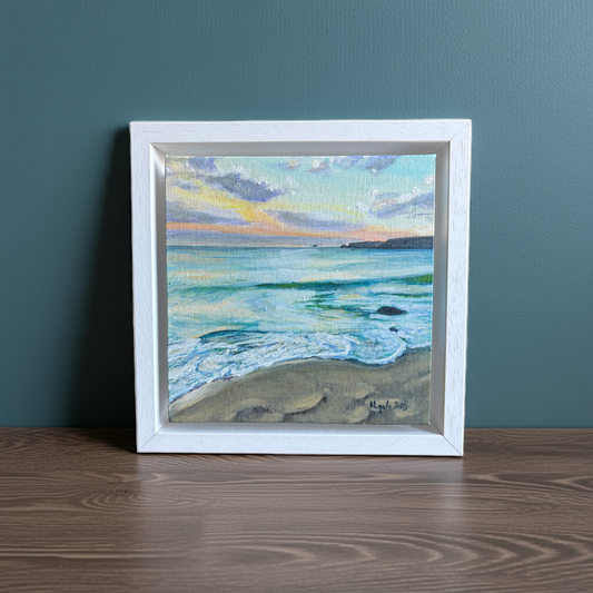 Angela’s art has been inspired by her travels, whether it be the dramatic skies of the Outer Hebrides to the turquoise seas of Cornwall or from red desert rocks, to tropical sunsets.