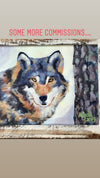 Our mom received a picture frame for her birthday from her best friend. Mom has always loved wolves and me and my sister thought it would be great to commission a painting as a surprise to make it special. I contacted you re a painting and we looked at options for the wolf and for the background and your advice on this was invaluable. You then did the painting which hangs in pride of place in mom’s room. She loved it. Her friend passed away since so it is now also a treasured reminder of her much missed friend. Big thank you xxx