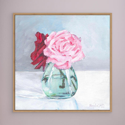 Pink and red rose in vase