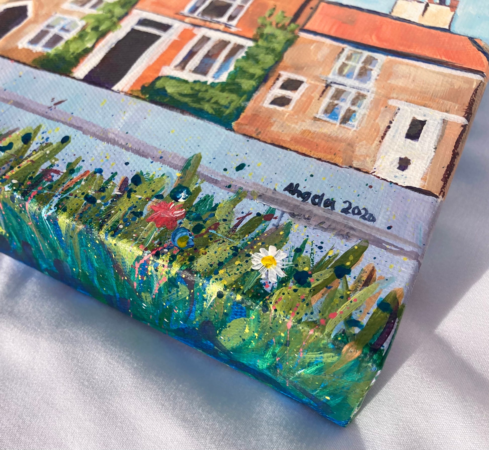 Although this box canvas is unframed and the painted surface extends around the sides, the customer may wish to frame it. It can be framed either in a traditional frame or as a floating canvas. The framing would be the responsibility of the customer but advice and information can be provided as to what the options could look like.